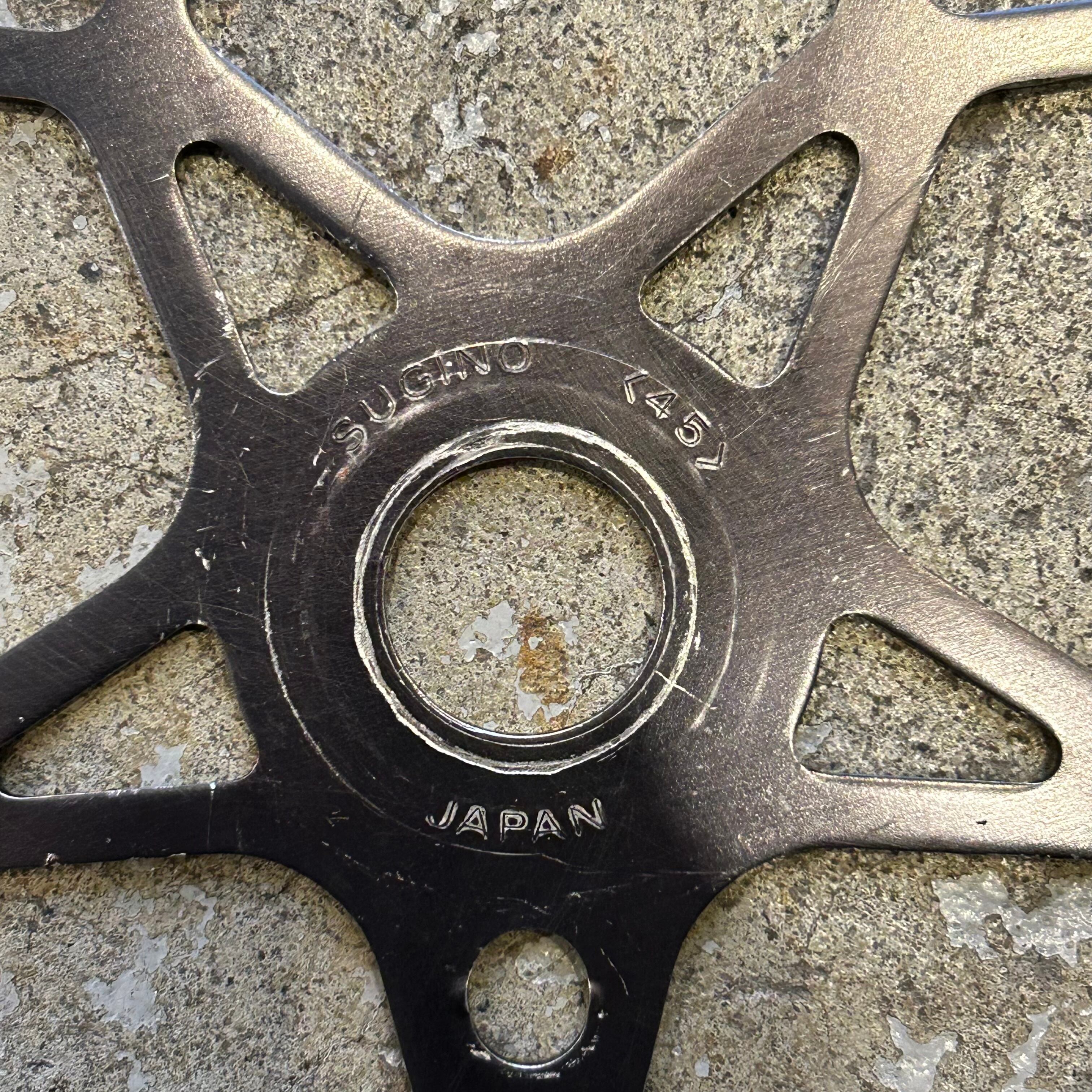 VINTAGE USED SUGINO ALLOY SNOWFLAKE sprocket 44Tin BLACK (色褪せ)